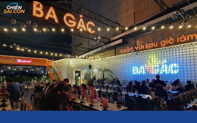 Quán nhậu Ba Gác Vietnamese Grill & Beer Garden Nam Kỳ gây ấn tượng nhờ không gian rộng, thiết kế mở và view đẹp, tạo cảm giác thoải mái khi ngồi nhậu cùng nhóm đông. Theo đánh giá của Ghiền Sài Gòn, quán mang đến không khí sôi động nhưng không quá ngột ngạt, phù hợp cho những buổi tụ tập sau giờ làm.
