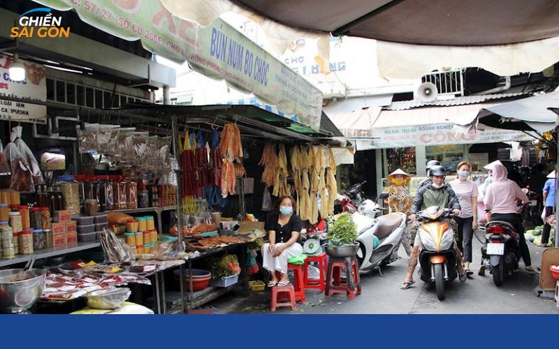 Chợ Campuchia là một khu chợ dân sinh – ẩm thực nổi bật tại Sài Gòn, nơi tập trung đầy đủ nhiều nhóm mặt hàng phục vụ cả nhu cầu ăn uống lẫn sinh hoạt hằng ngày. Không chỉ mang nét đặc trưng của cộng đồng người Khmer, khu chợ còn gây ấn tượng bởi sự đa dạng sản phẩm, mức giá bình dân và không khí buôn bán nhộn nhịp kéo dài từ chiều đến tối.