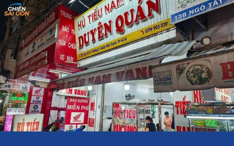 Đến Quận Bình Thạnh, TP.HCM, thực khách gần xa nhất định phải ghé qua hủ tiếu Nam Vang Duyên quán. Nơi đây là một trong những quán bán hủ tiếu Nam Vang lâu đời bậc nhất miền Nam với nước dùng đậm đà truyền thống. Không gian quán cũng rất giản dị, giá cả phải chăng kể cả khách du lịch phương xa. Cùng Ghiền Sài Gòn trải nghiệm ngay quán ăn này nhé!