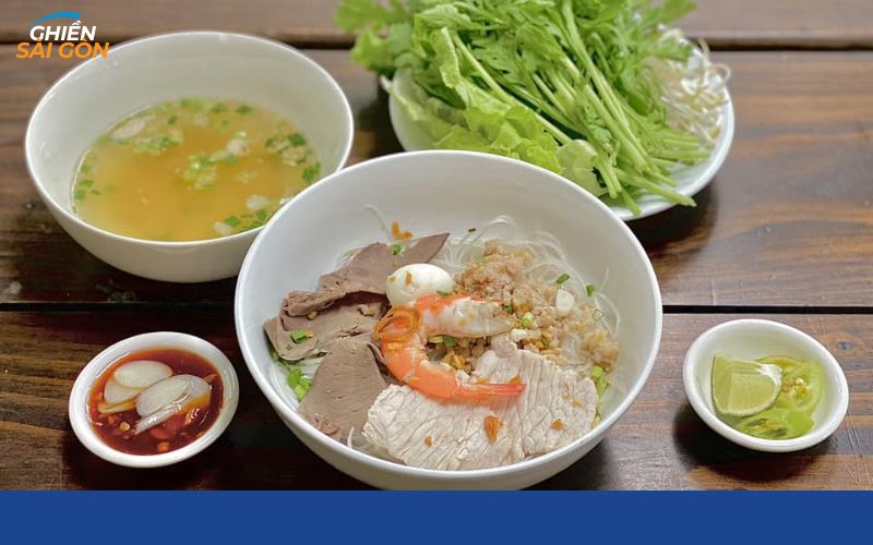 Sợi hủ tiếu được đánh tơi, mềm nhưng vẫn giữ độ dai vừa phải; topping đầy đủ từ thịt nạc, thịt bằm, cật, gan đến trứng và tôm tươi, tất cả hòa quyện cùng hành lá thơm lừng. Chỉ cần chan ngập nước lèo trong vắt, thêm chút ớt khô rồi thưởng thức một thìa đầu tiên, bạn sẽ cảm nhận ngay vị ngọt thanh, béo nhẹ và thơm nồng đủ sức đánh thức mọi giác quan.