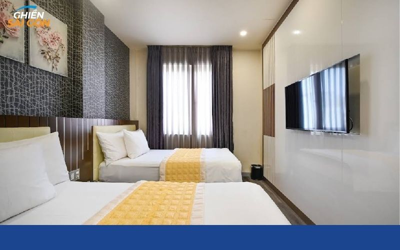 Aiden Saigon Hotel cung cấp hệ thống tiện ích đa dạng như hồ bơi ngoài trời, phòng gym và khu xông hơi. Phòng nghỉ thiết kế hiện đại, đầy đủ vật dụng cần thiết phục vụ lưu trú. Không gian rộng rãi giúp khách thư giãn thoải mái. Khoảng cách dưới 2km giúp di chuyển thuận tiện, phù hợp với người tìm khách sạn gần AEON Bình Tân có dịch vụ đầy đủ.