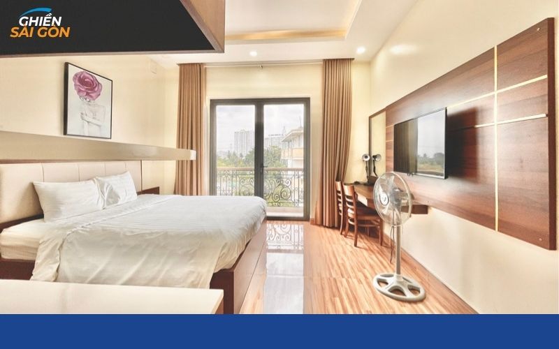 Không gian lưu trú mang phong cách hiện đại với tông màu trung tính tạo cảm giác dễ chịu. Phòng rộng, có ban công đón ánh sáng tự nhiên, phù hợp nghỉ ngơi sau ngày dài di chuyển. Dịch vụ lễ tân hoạt động liên tục, wifi ổn định, khu vực đỗ xe tiện lợi. Vị trí gần trục đường lớn giúp việc di chuyển từ khách sạn gần chợ Thủ Đức đến trung tâm diễn ra nhanh chóng.